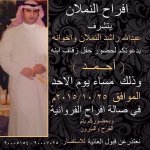 عبدالله راشد النملان واخوانه بدعوتكم لحضور حفل زفاف ابنه أحمد نعتذر عن قبول العانية أضف تعليق